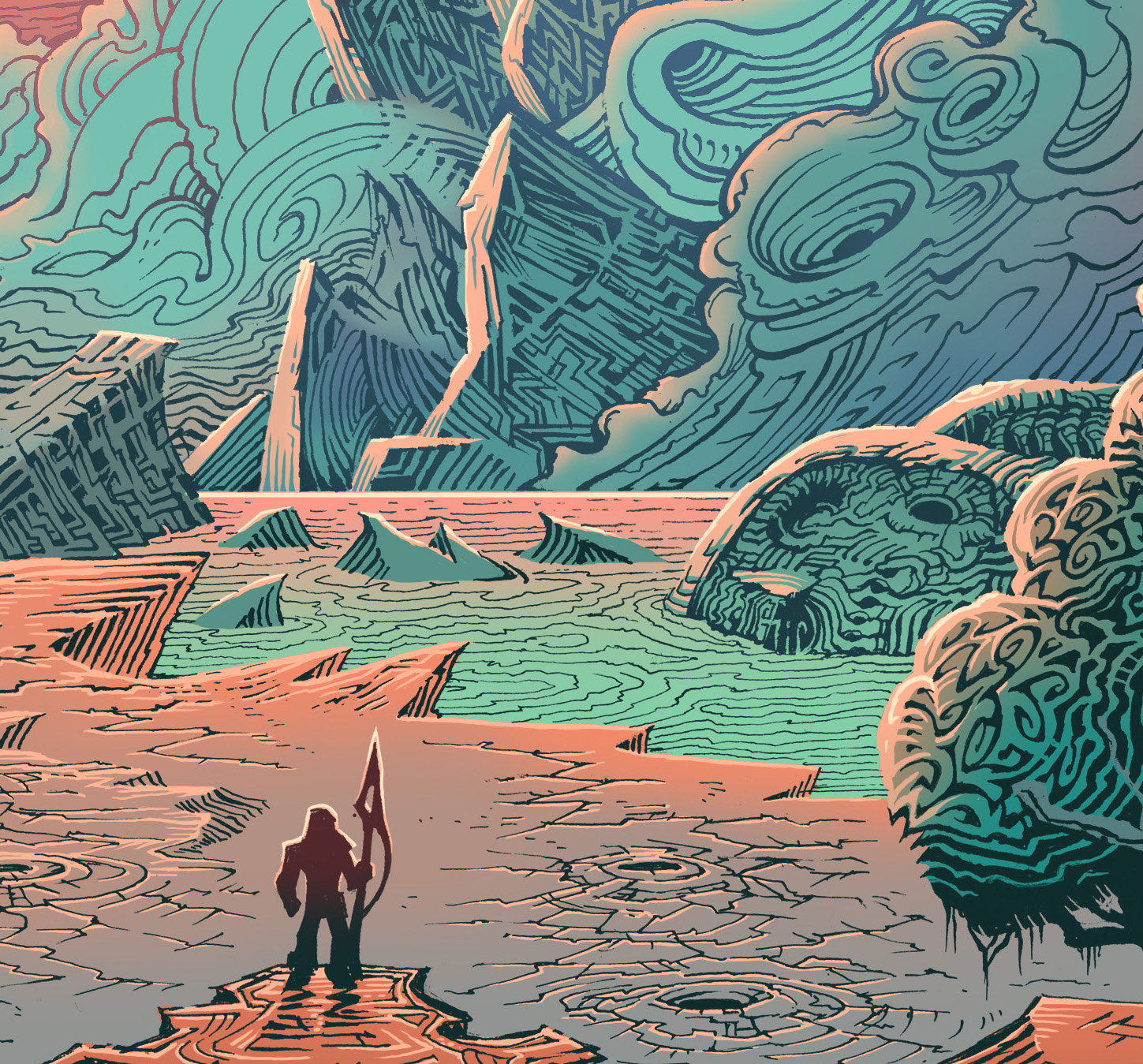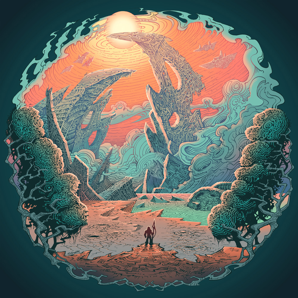 12"x12" Giclee print done for the amazing album "Asheran" by the amazing band DVNE! Pen and ink colored digitally.