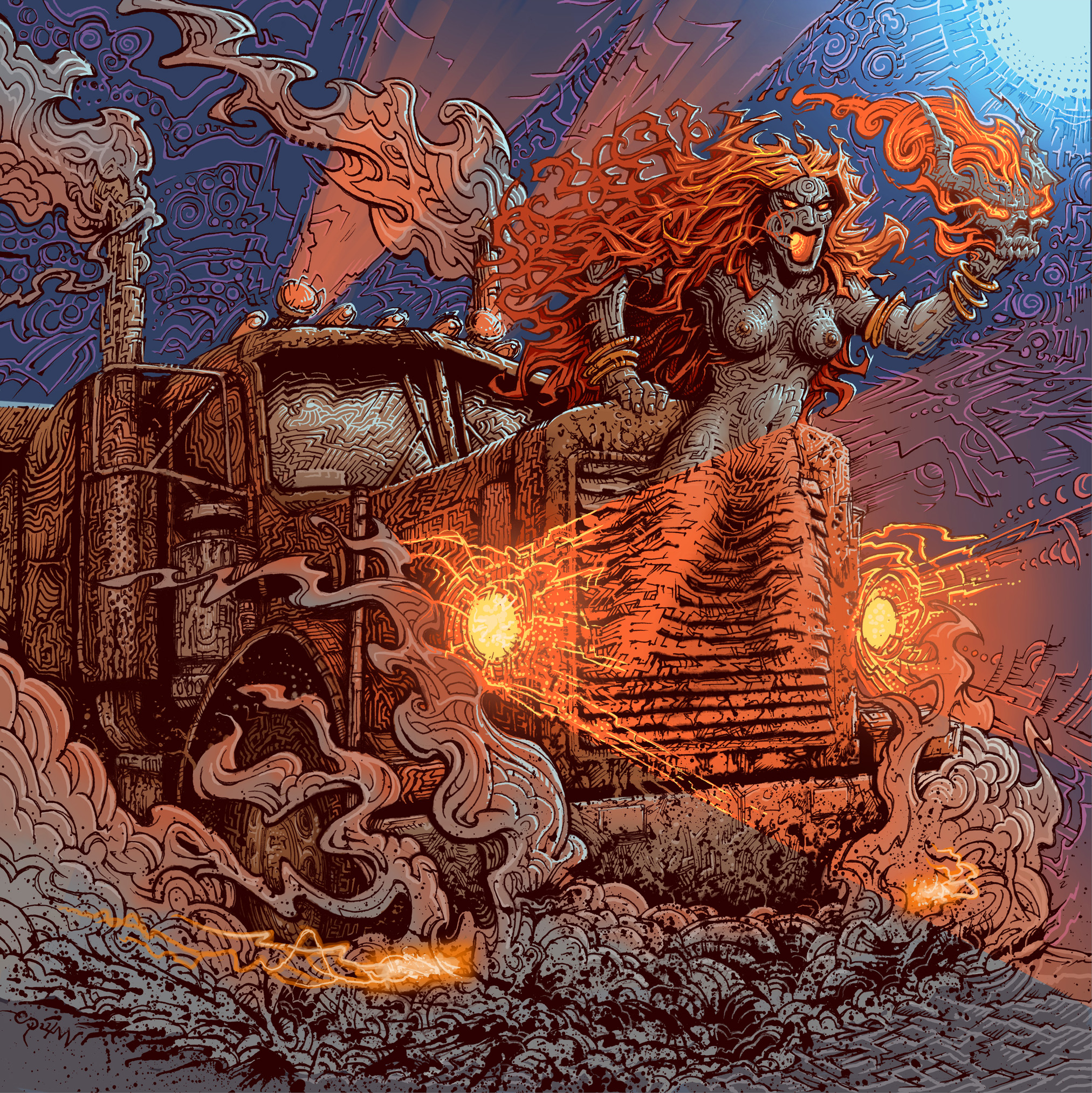 Album cover for Fusskalt's "Intercooler!" What's cooler than a bad-ass demon sorceress melded with a truck from hell? NOTHING!
