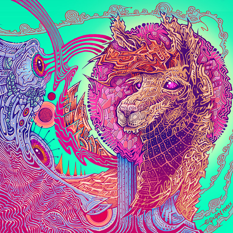 A shaman who's also a llama! Exploring the depths and heights of the psychedelic experience! Pen and ink colored digitally. 12" x 12" print, fits any somewhat-standard frame!